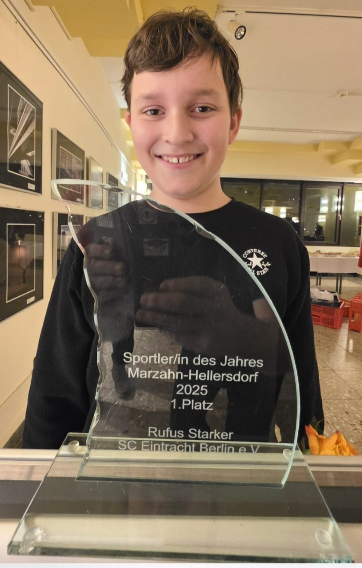 Rufus Starker wurde in der Altersklasse 10-14 Jahre unter allen Sportlern für seine Leistung als 3-facher Berliner Meister im Einzel, Doppel und in der Mannschaft der C-Schüler, mit dem 1. Platz ausgezeichnet.